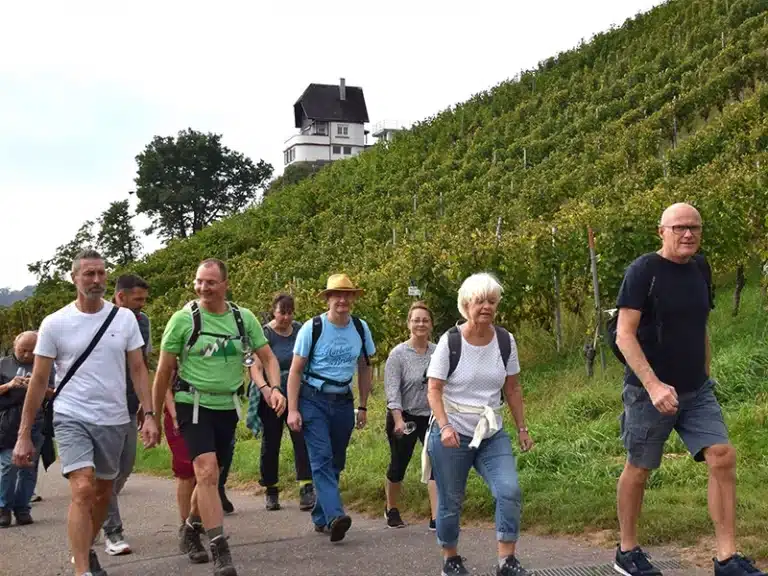 Die liebliche und abwechslungsreiche Landschaft lädt zum Wandern ein. Weinreben, Wälder aber auch Felder und Wiesen bilden ein harmonisches Landschaftsbild.